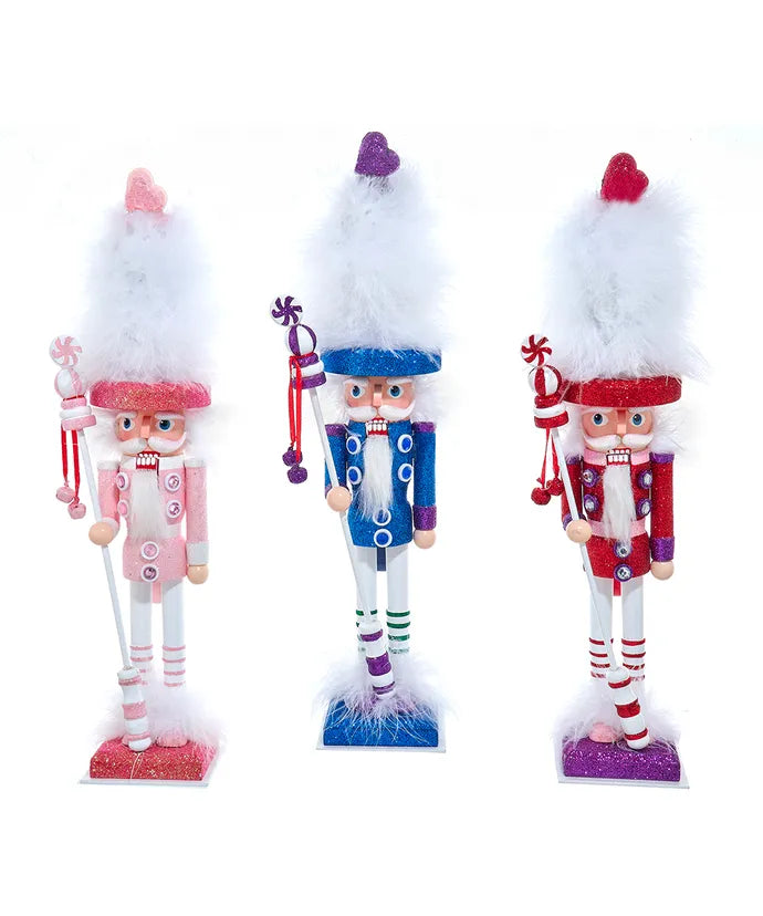 These 15" Hollywood Nutcrackers™ Blue, Pink & Red Bold Color Nutcrackers from Kurt Adler are a trio of festive and vibrant nutcrackers that add a bold and whimsical touch to your holiday decor. Crafted with meticulous attention to detail, these nutcrackers stand at an impressive 15 inches, making them eye-catching focal points for your seasonal displays. The assortment includes a striking blue, a playful pink, and a vibrant red nutcracker, each adorned with intricate detailing on their uniforms, hats, and accessories. The Hollywood Nutcrackers™ collection is known for its flamboyant and theatrical designs, and this assortment certainly lives up to that reputation. Crafted from high-quality materials, these nutcrackers are not only visually striking but also durable, ensuring they become cherished pieces in your holiday collection for years to come. Whether displayed together as a trio or individually, these nutcrackers bring a modern and spirited flair to your Christmas decor. With their generous height, these nutcrackers are perfect for placing by your Christmas tree, fireplace, entryway, or any prominent space in your home. Transform your holiday decor into a vibrant and festive spectacle with these bold and contemporary Hollywood Nutcrackers™. Their lively colors and whimsical designs are sure to bring a touch of theatrical flair to your Christmas celebrations.