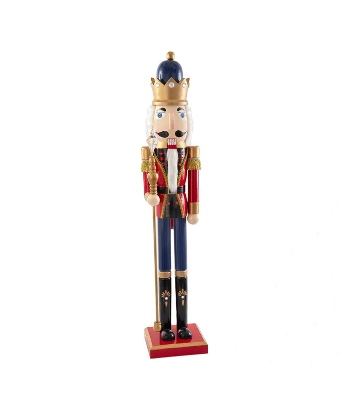 Kurt Adler's 36" Wooden Red & Blue King Nutcracker is a grand and stately addition to your holiday decor that exudes regal charm and brings a touch of majesty to your Christmas celebrations. This oversized nutcracker features an intricate design, showcasing a kingly figure in rich red and blue attire, complete with a crown, scepter, and ornate details that evoke opulence and holiday grandeur. Crafted with meticulous attention to detail, it stands tall at an impressive 36 inches, making it a striking centerpiece for your holiday decor. Its ornate design captures the essence of royalty and adds a sense of majesty and festivity to your Christmas decorations. Whether you're a fan of larger-than-life holiday decor, a collector of nutcrackers, or someone who appreciates the regal beauty of traditional holiday figures, this nutcracker is the perfect choice. It brings a sense of grandeur and holiday opulence to your home, making it a focal point of your holiday traditions and a source of festivity and elegance for family and friends. Let it become the centerpiece of your Christmas displays, creating a royal and festive atmosphere for your holiday celebrations.