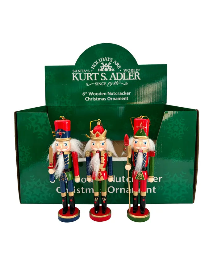 Kurt Adler's 6" Wooden Nutcracker Ornaments are a timeless and classic addition to your holiday decor that captures the traditional charm of nutcrackers. This assortment includes three nutcracker ornaments, each featuring a wooden nutcracker figure, creating a delightful and festive collection that embodies the spirit of the season with nostalgia. Crafted with meticulous attention to detail, these ornaments are made from high-quality wood materials that evoke the charm of traditional craftsmanship and the joy of traditional Christmas celebrations. These ornaments are not only perfect for enhancing your own holiday decor but also make timeless gifts for those who appreciate the classic elegance and vintage appeal of nutcrackers. Celebrate the magic of the holidays and the timeless appeal of nutcrackers with our 6" Wooden Nutcracker Ornaments, and let these classic figures remind you of the cherished moments and the happiness that this special time of year brings. Create cherished holiday traditions with this traditional addition to your Christmas decorations, and let them be a symbol of the festive atmosphere and the joy of the season with timeless elegance.