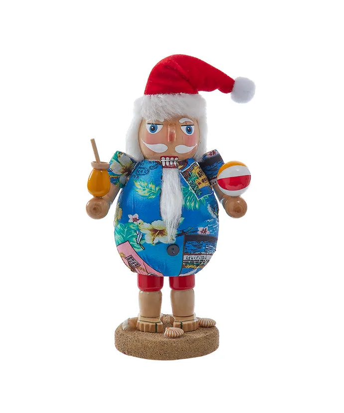 Bring a touch of the tropics to your holiday décor with the Kurt Adler 9-Inch Wooden Tropical Beach Santa Nutcracker! This unique twist on a classic favorite features Santa Claus in a laid-back island style, donning a vibrant tropical shirt that adds a splash of color to any setting. Standing at a charming 9 inches tall, this wooden nutcracker captures the essence of a beach getaway with Santa holding a refreshing cocktail and a playful beach ball. It's the perfect blend of Christmas tradition and summertime fun, making it an eye-catching addition to your mantel, shelf, or holiday centerpiece.
