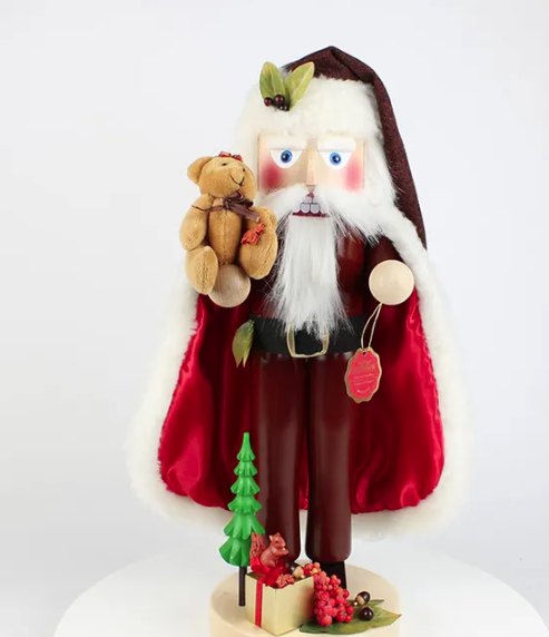 He has a beautiful red cape that is perfectly adapted to the contrasting brown clothing style. As are all Steinbach Santas, this lifelike Santa Claus is a happy fellow, perfect for that Santa collector who likes to get a jump on the holiday season. The Autumn Santa is a memorable addition to your Christmas collectables. A handcrafted, one-of-a-kind Santa. Made in Germany!
