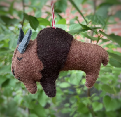 Our Bison Ornament is ready to roam on your Christmas tree. Commonly called an American buffalo, this iconic beast is expertly handmade by artisans in Nepal, Asia using colorful sheep wool. Popular for their charming designs, felt ornaments are soft, durable and excellent for holiday gifting.