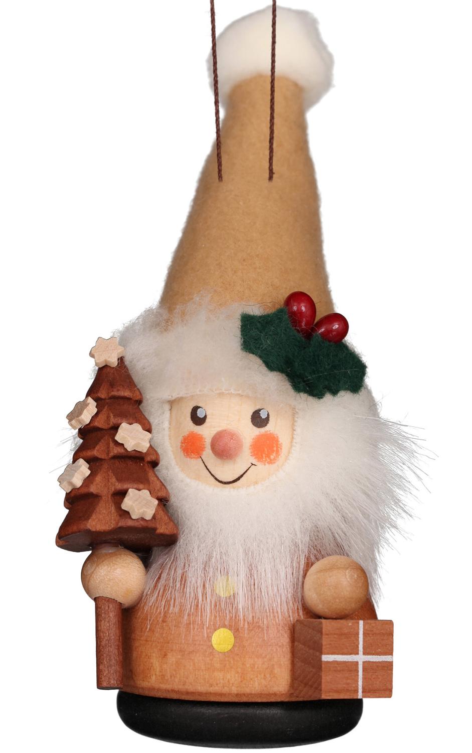 Christian Ulbricht hanging ornament - Santa with tree in natural wood finish - Made in Germany.