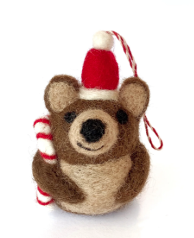 This roly-poly pal will swing happily from the branches of your Christmas tree! Our Tufted Wool Bear Christmas Ornament is handmade by artisans in Nepal, Asia using colorful sheep wool. Popular for their charming and durable designs, tufted ornaments are perfect for your rustic Christmas tree or stocking stuffer.