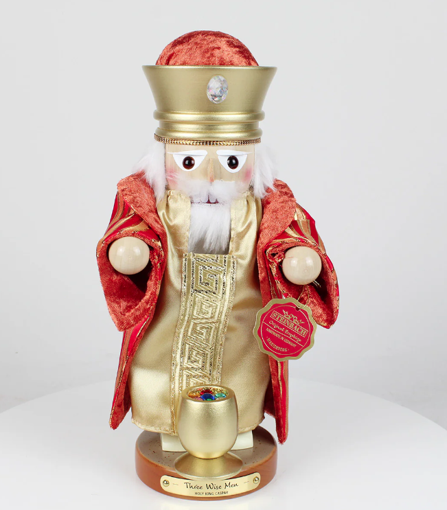Expertly handcrafted in Germany, this Chubby Melchior Nutcracker is a charming addition to your nativity collection, with the same attention to detail and quality that Steinbach is known for.