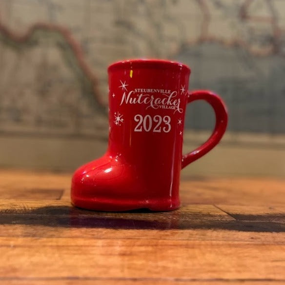 2023 Commemorative Red Boot Mug - bring your mug to the Gluhwein Garden on weekends for a $1 off drinks!