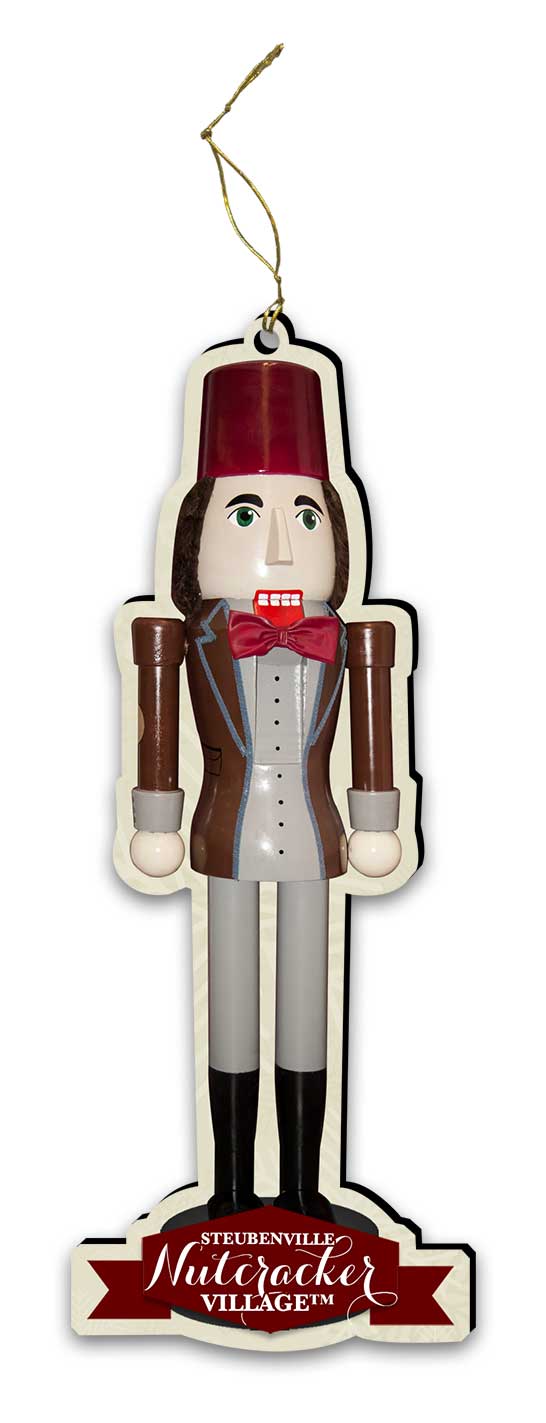 These miniature wood ornaments feature two-dimensional images of the eponymous stars of the Nutcracker Village™, the world's largest collection of life size nutcracker sculptures.