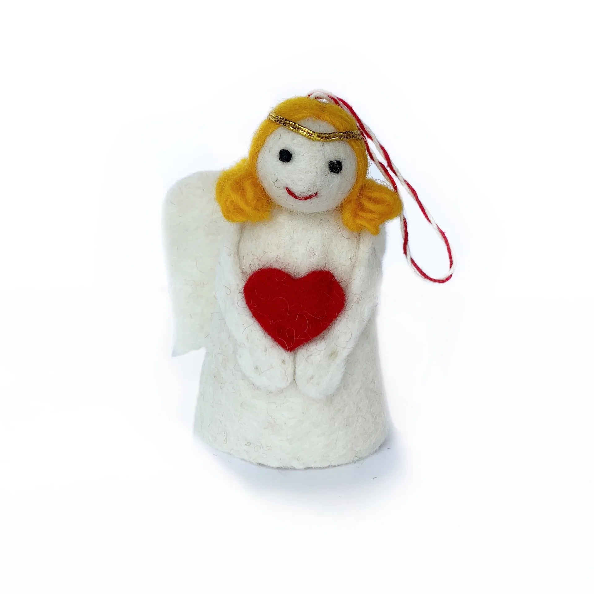 Hang a heavenly chorus on your Christmas tree with our NEW Felt Angel Ornaments! These sweet angels feature wooly white wings and a bold red heart. Choose from four complexions: dark, medium, light or white. Our Felt Wool Ornaments are handmade by artisans in Nepal, Asia using colorful sheep wool. Popular for their charming and durable designs, felt ornaments are perfect for holiday gifting.