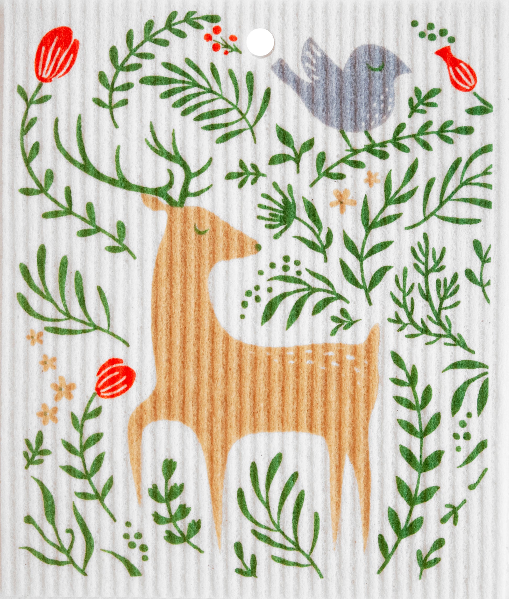 Swedish Wash Towel, Floral Deer & Bird