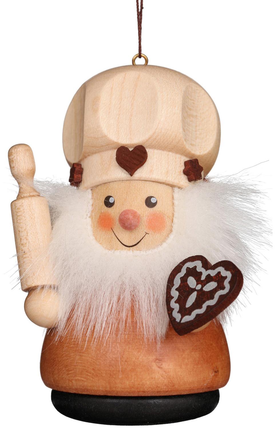 Christian Ulbricht hanging ornament - Gingerbread baker with rolling pin in natural wood finish - Made in Germany.