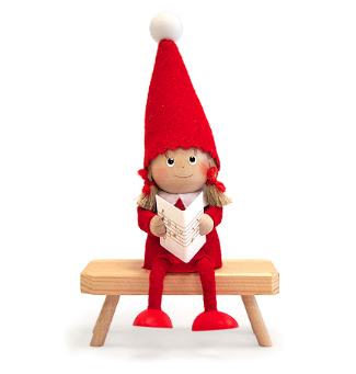 Nordic Dreams red girl ornament sitting and singing with songbook.