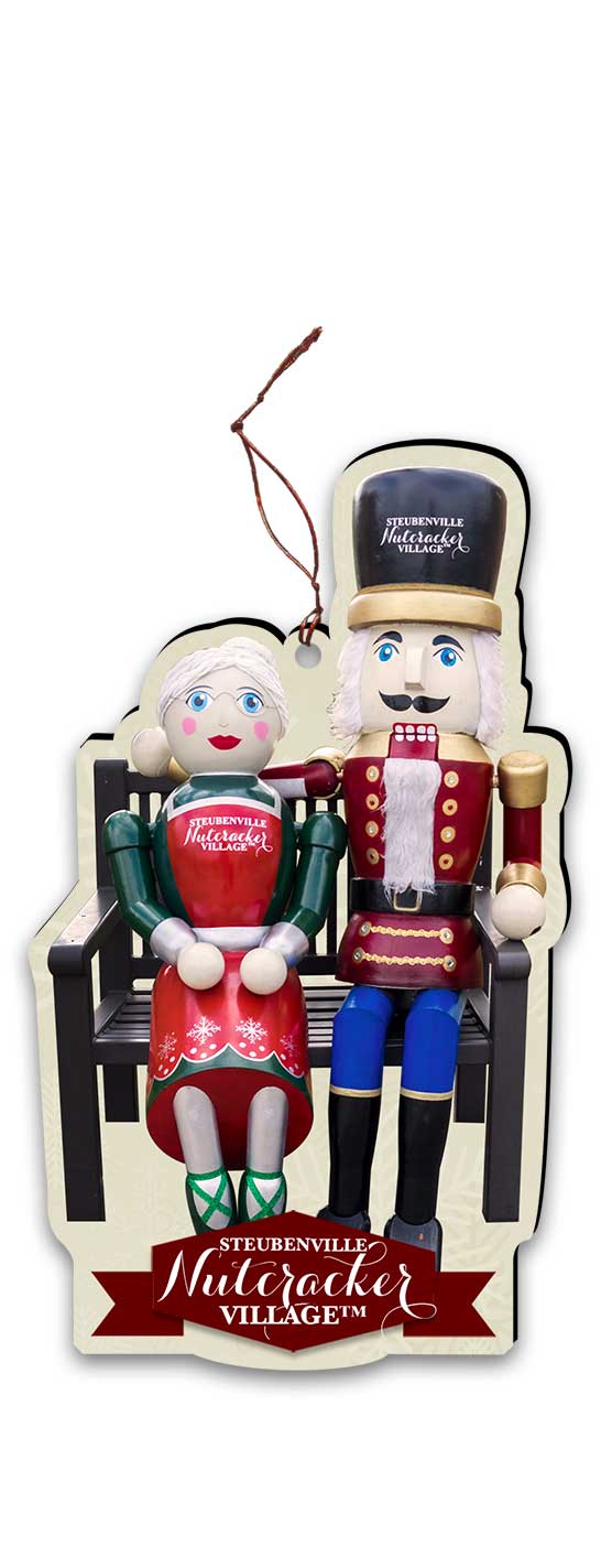 These miniature wood ornaments feature two-dimensional images of the eponymous stars of the Nutcracker Village™, the world's largest collection of life size nutcracker sculptures.