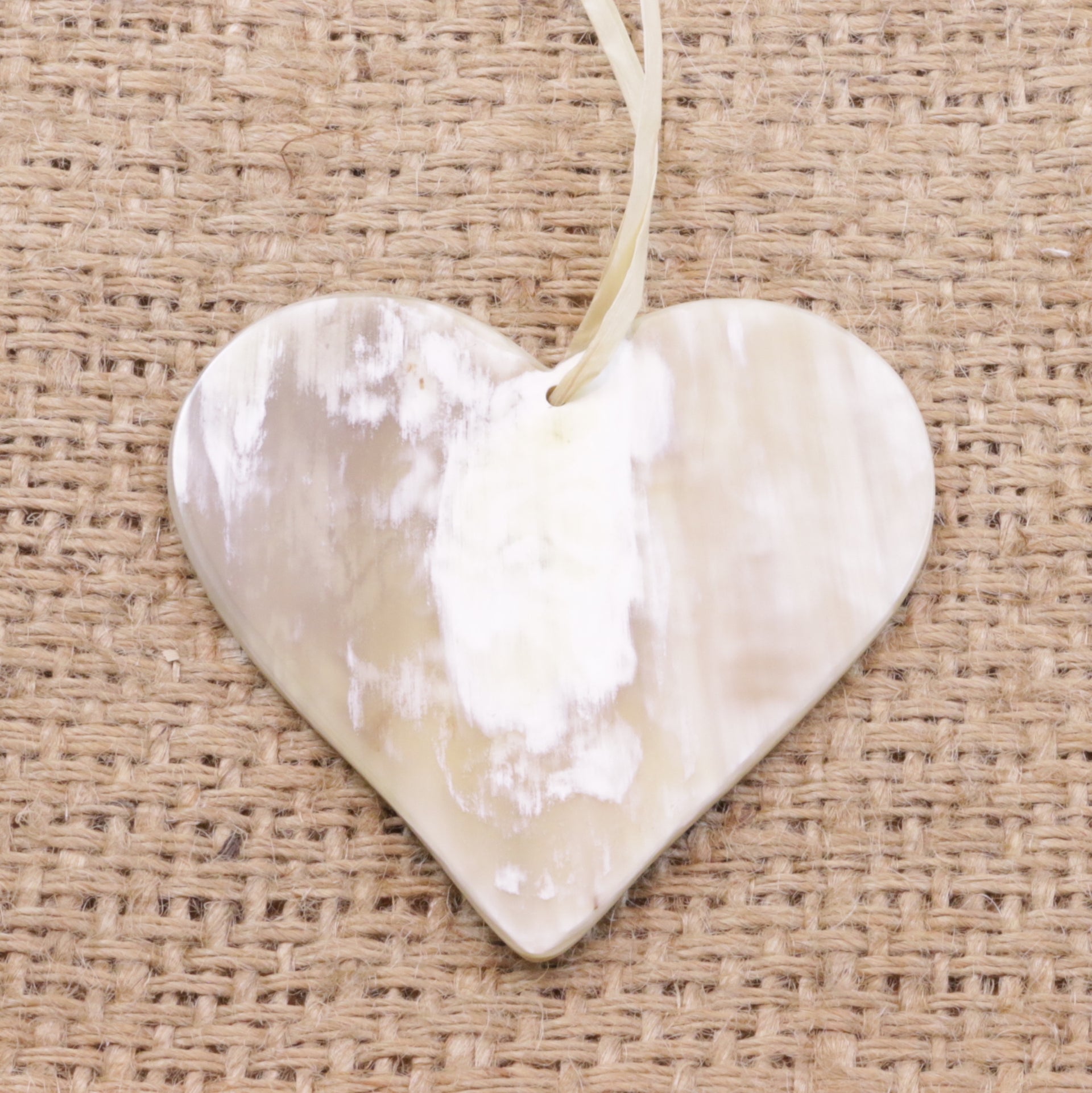 Classy, elegant and responsibly sourced! Artisans in Uganda, East Africa repurpose discarded horns from native Watusi cattle. Horns are smoothed to reveal their natural grain and then cut into the shape of a heart. This ornament will stand out beautifully on your evergreen Christmas tree! Available in two sizes.