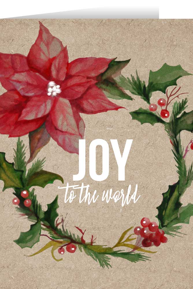 Joy to the World with Vintage Holly and Flower Christmas Cards (Box of 25)