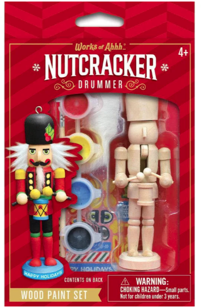This Drummer Ornament Wood Craft & Paint Kit is made of real wood, and includes everything you need to create a beautiful work of art! The Drummer Ornament Wood Craft & Paint Kit is the perfect gift for every art loving kid! The nutcracker measures approximately 5" tall, 1.5" wide, and 1.25" deep. It includes 1 wood nutcracker drummer ornament, White fur, 1 sticker sheet, 4 non-toxic acrylic paint tubs, and 1 artist-quality paintbrush.
