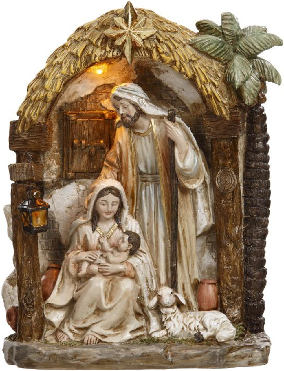 This 8" tall timeless piece is sure to make the perfect Christmas nativity for you or a loved one. Built with detail and quality in mind so you will be able to pass it on for years to come. It features a built in LED light at the top of the stable which can be turned on at the bottom.