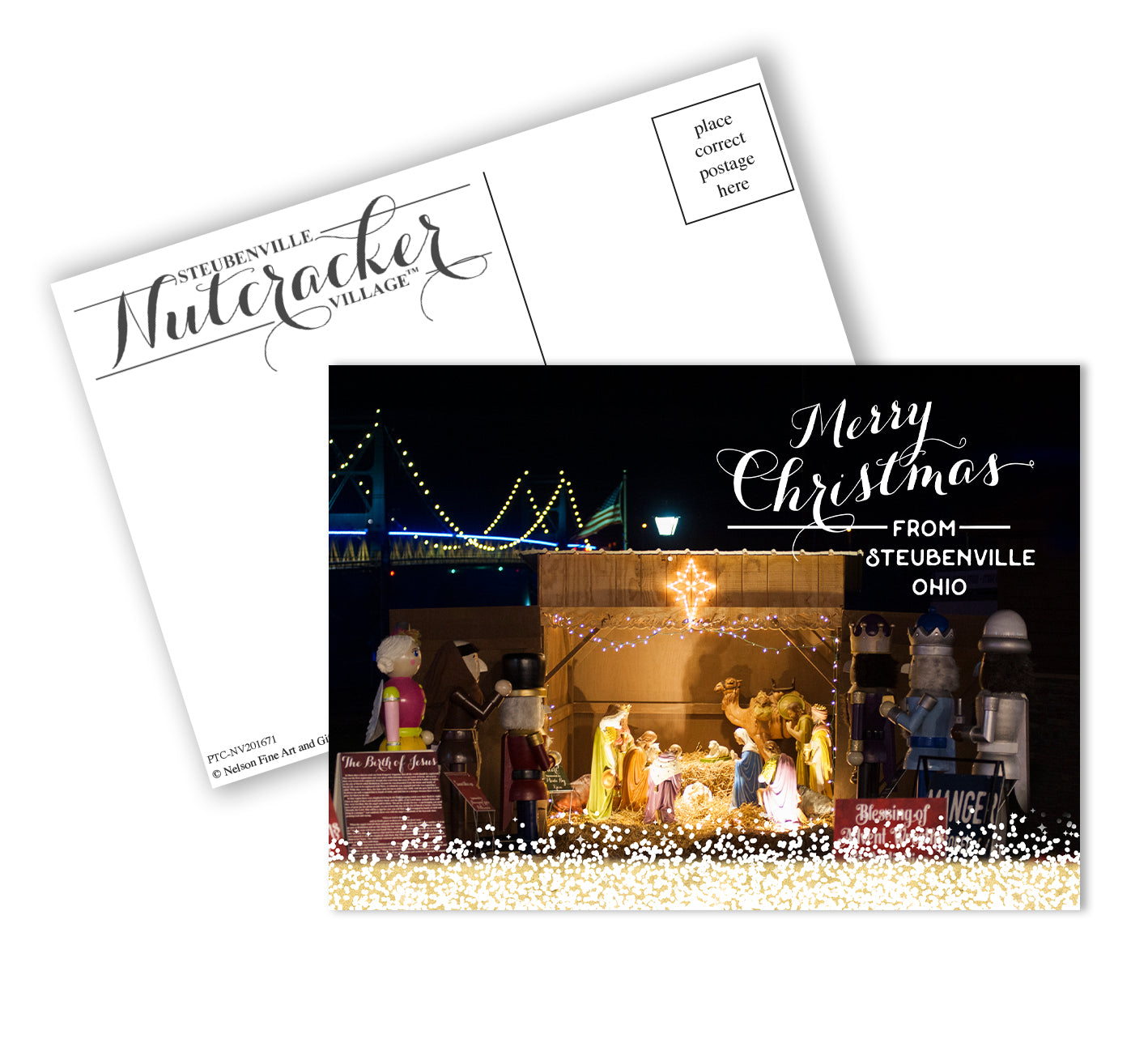 Designed, printed, and shipped from Steubenville, Ohio, these 5X7 postcards are made by Nelson's, the family-owned company that brings the Nutcracker Village to life!