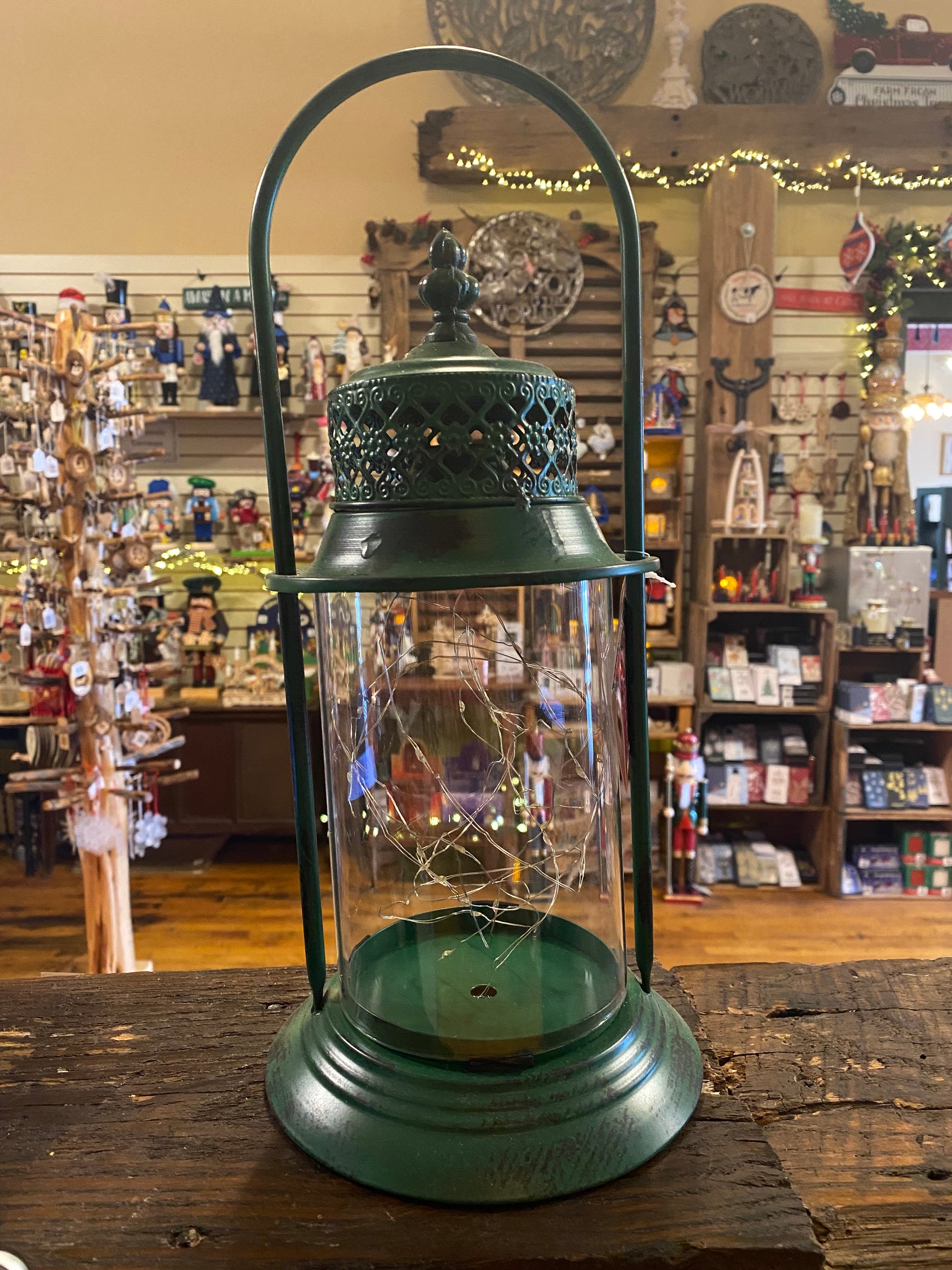 red/green metal lantern