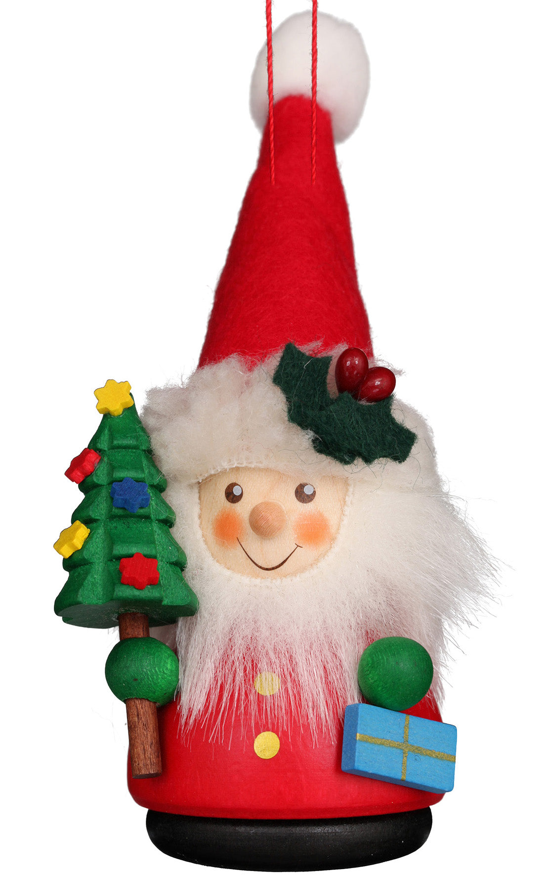 Christian Ulbricht hanging ornament - Santa with Christmas Tree and present - Made in Germany. - 5"H x 2"W x 2"D