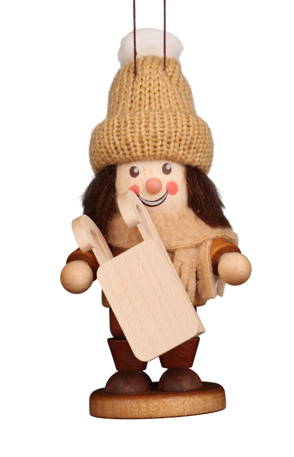 13-0716 - Christian Ulbricht Ornament - The natural colored sledder wears a thick beanie and is ready for some fun on the mountain. Made in Germany. - 4.75"H x 2.5"W x 2"D