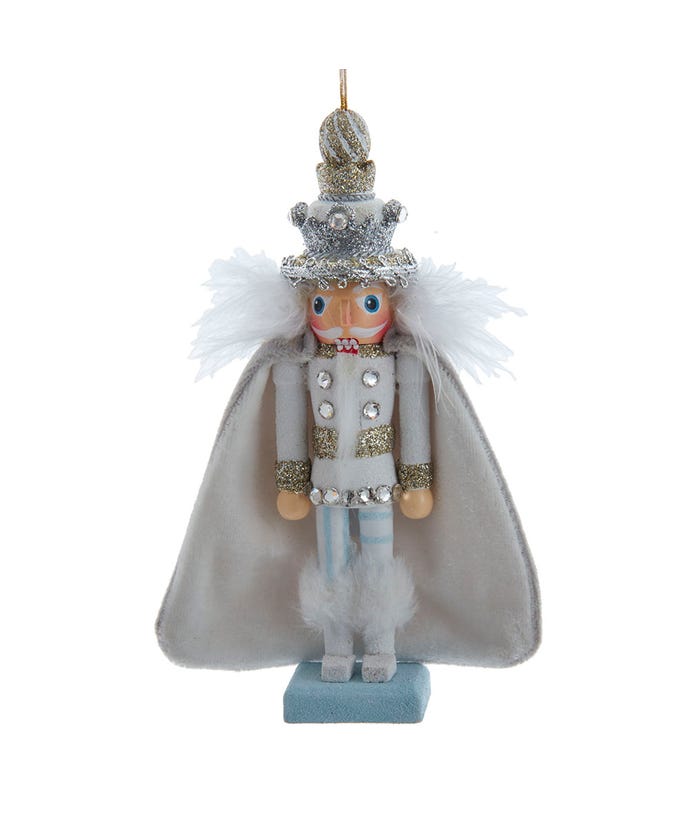 Hollywood Nutcrackers™ is a whimsical collection of nutcrackers created exclusively for Kurt S. Adler, Inc. and features an assortment of designs that put a unique, vibrant, memorable twist on traditional nutcrackers. This 6-Inch White and Silver Swarovski King Nutcracker Ornament from Kurt Adler is a fun and festive addition to any holiday décor or tree. This king is wearing white and silver with a white cape, and has Swarovski embellishments throughout.