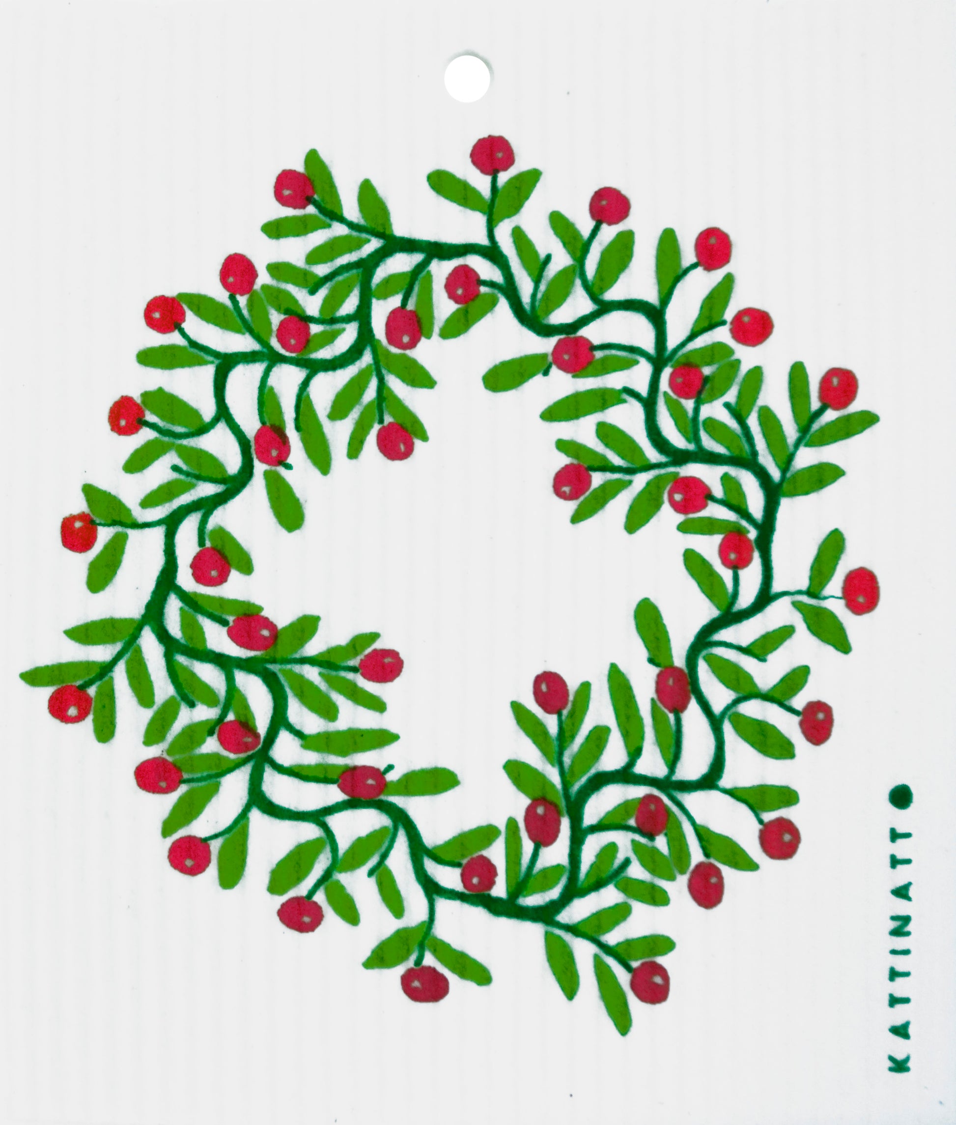 Swedish Wash Towel, Holly Wreath