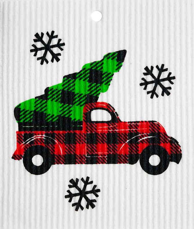 Swedish Wash Towel, Buffalo Plaid Truck w/Tree