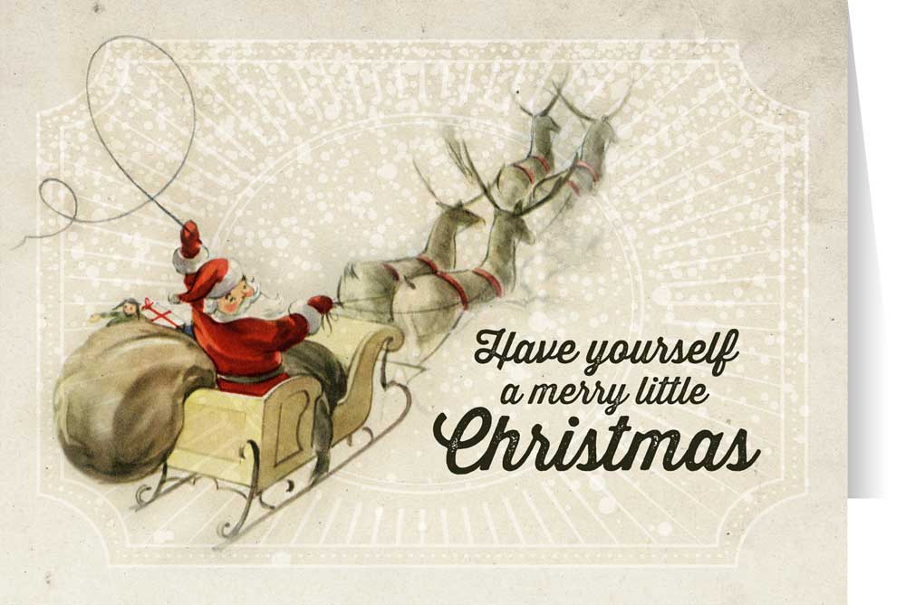 Vintage Santa and Sleigh with Reindeer Christmas Cards (Box of 25)
