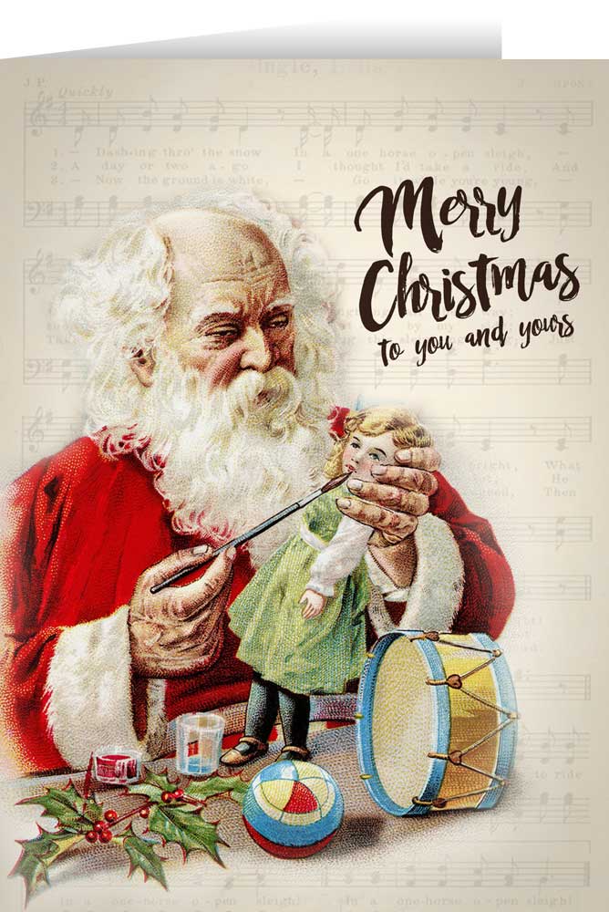 Vintage Santa Painting Doll Christmas Cards (Box of 25)