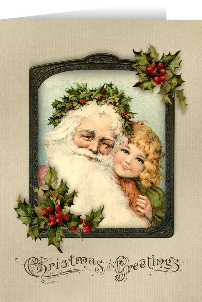 Vintage Santa with Girl Christmas Cards (Box of 25)